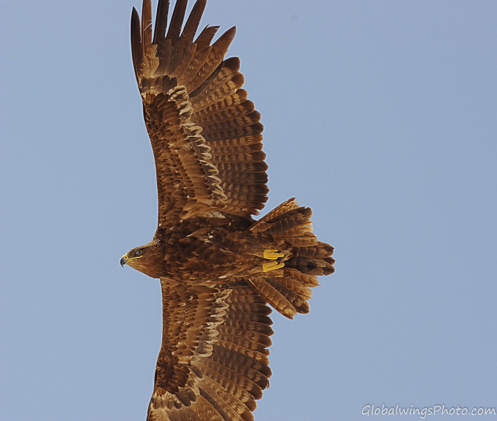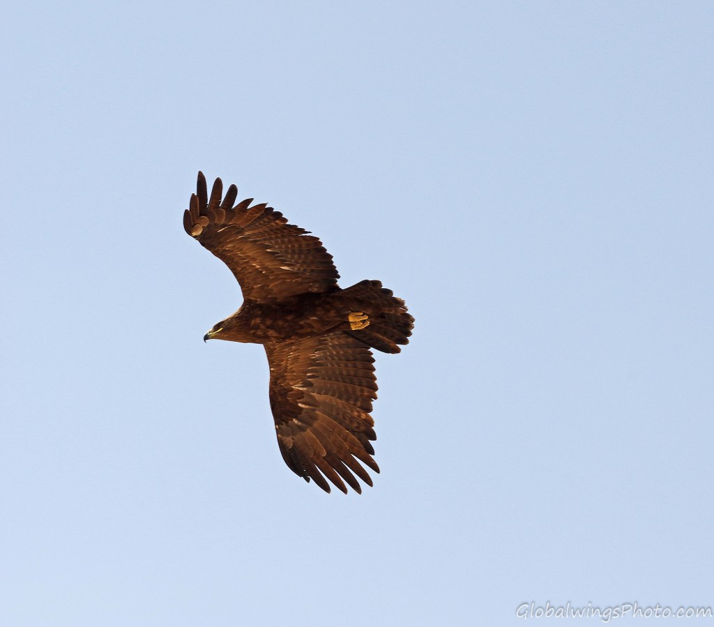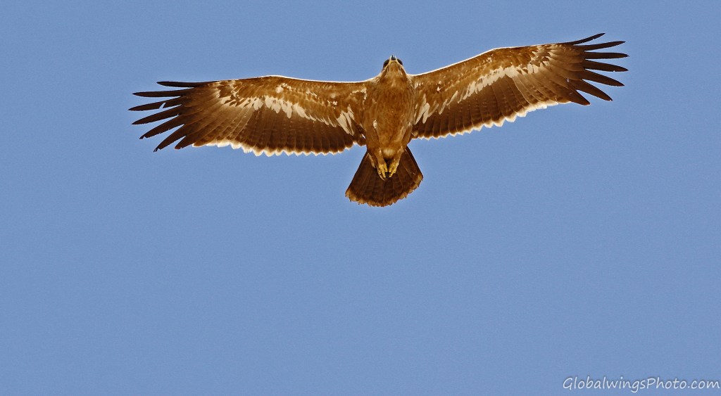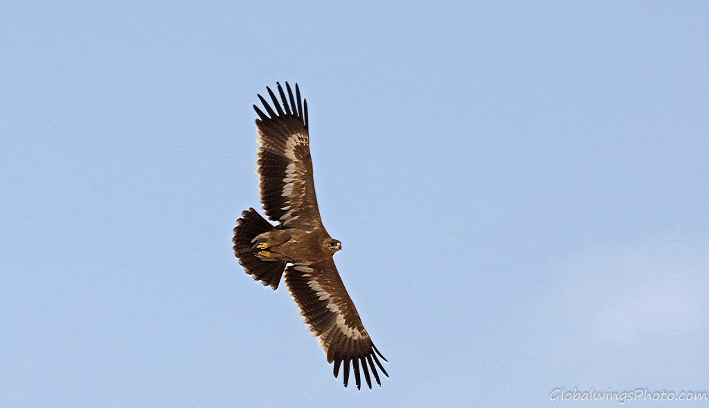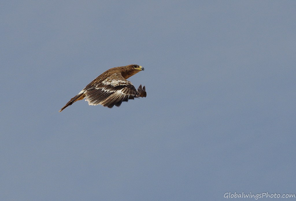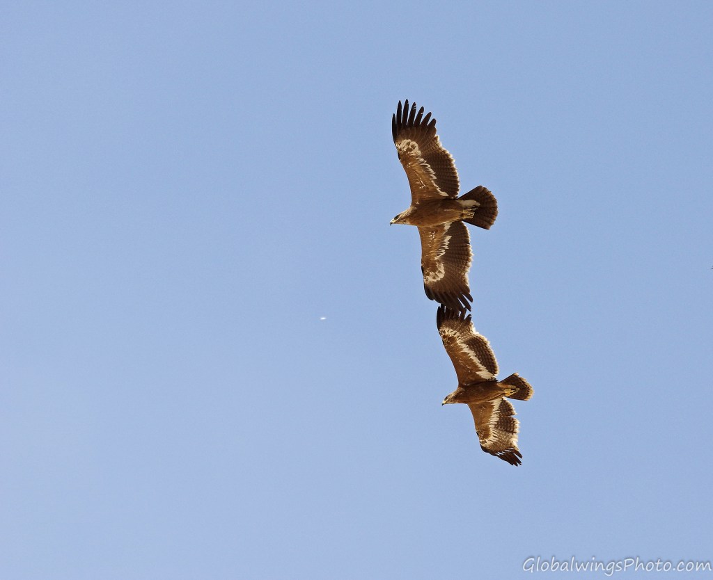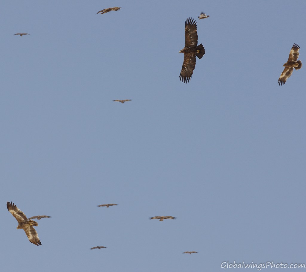 The steppe eagles that winter in Salalah and other places in West Asia and Africa breed in West Asia and East Europe. It is disputable whether this Western population could be seen as a separate race – Aquila nipalensis orientalis -, different from the Eastern population in East Asia that winter in South and Southeast Asia: Aquila nipalensis nipalensis. This implies that the characteristics of the age groups of the Western population presented on this page could also be valid for the Eastern population. This position is also taken by Dick Forsman in his book ‘Flight Identification of Raptors of Europe, North Africa and the Middle East’ (2016) and by Benny Génsböl in ’Rovfåglar i Europa’ (2006), which are the major sources for sorting my photos into different age groups.