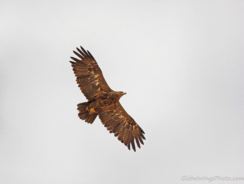The adult eagles found on Photos 14 and 15 are uniformly dark brown with a dark trailing-edge and yellow legs.